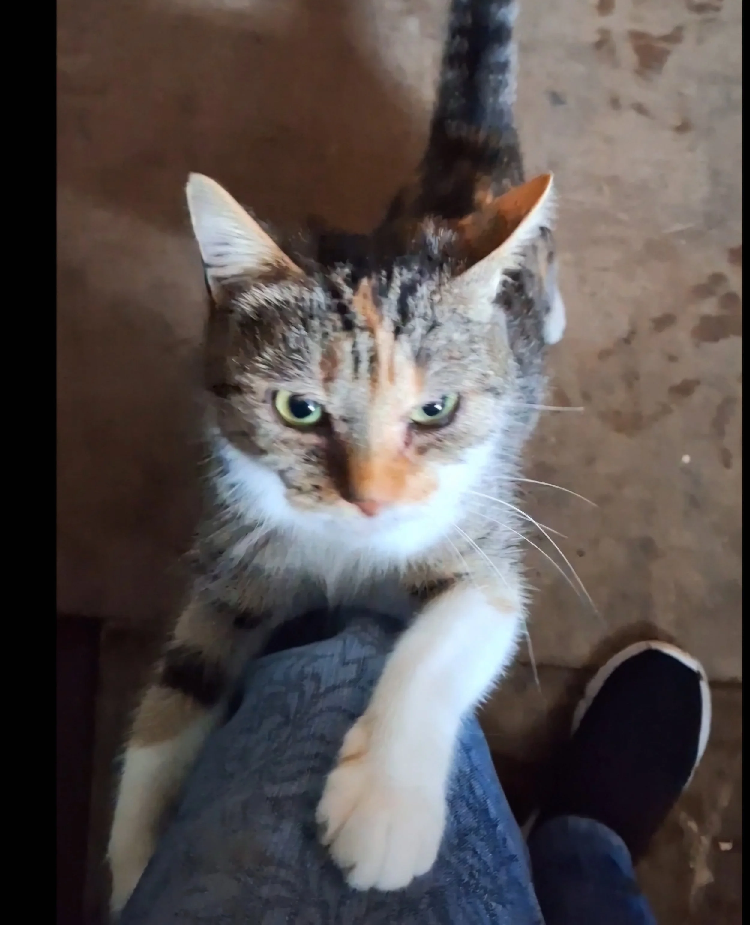 Approx. 1 year old. Spayed, flea and worm treated vaccinated. Experience with other cats